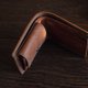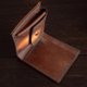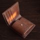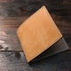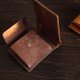 这是一款使用意大利鞣革厂 Il Ponte 的 Maya 皮革制作的对折皮夹。这种皮革的特色是经过植物鞣制和染色后,再进行称为“吟擦り”(Gin-suri) 的加工,会在皮革表面产生斑驳的刮痕。