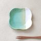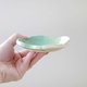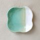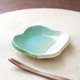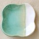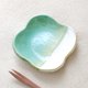 这个小盘子是用能凸显釉色的粗白黏土捏成可爱的四瓣花形状制成的。