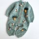 连身衣有长袖和裤管。它由非常柔软的纱线制成,完全不会刺痛,专为新生儿娇嫩的皮肤而设计。
