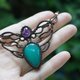 紫水晶+天河石 点缀橙色的太阳石 冰绿的橄榄石