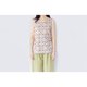 这款 V 领无袖上衣在正面有抓皱设计,左右两侧皆可调整松紧,背面则采环绕式抓皱。 上衣采用白色棉质布料制成,印有如图所示的缤纷碎花图案。 尺寸(均码) 肩宽:13 英寸 胸围:36 英寸 衣长:24 英寸 袖围:8 英寸