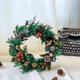 *由不凋雪松、不凋尤加利、不凋扁柏等松类枝叶,搭配各式进口干燥果实制成的圣诞花圈