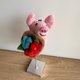 有一位小猪紧紧抱着那比他脸还大的花束。