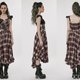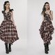 吊带收腰A型裙,肩带采用可调节皮袢,下有可拆卸帅气垫肩