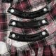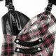 It is made of tie-dyed printed plaid fabric, spliced with micro elastic and bright fine texture faux leather.