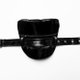 A-shaped with adjustable faux leather loops on shoulders and removable shoulder pads.