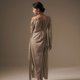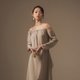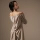 雾绿平肩抽绳后绑带洋装