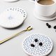 简朴实用的硅藻土杯垫,全天然材料制造。表面印有日系图案,底部配上软木防滑及加强隔热效果。