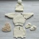 - Hand knit clothing set for baby girl, or boy: sweater, hat, panties and socks. Can be in white, ivory, beige, blue, pink and red colors. If you need another size, or color feel free to contact me.