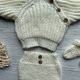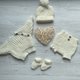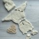 Knitting clothing set for baby girl. Sweater, panties, hat, socks. Can be as take home or baptism gift for newborn girl. A wonderfull shower gift for the expecting parents makes a really cute New Mom or New Dad gift.