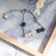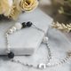 此款设计师使用蓝砂石和珍珠代表育儿路上的汗水与甜美,黑白色系搭配银链让整体低调又不失质感,经典色调不退流行,是适合收藏保存的款式