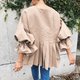 Back pleated balloon sleeve ribbon blouse - 女装上衣 - 棉.麻 卡其色
