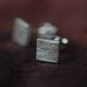 这款耳环的方形设计取自 1.5 毫米厚的银片,表面经过特殊处理,呈现出抓痕般的纹理(称为“猫须”蚀刻,是泰国卡伦银饰品的典型特色)。采用蝴蝶扣式耳针固定。耳环背面刻有我们的品牌标志“Stories”。