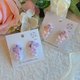 主体由数朵手工细腻的迷你玫瑰与小花簇拥而成迷你玫瑰花束。以小玫瑰花束、蝴蝶结和大珍珠为主要元素,花束下方悬挂着一颗饱满温润的棉珍珠,为整体设计增添了一份古典的优雅。