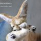 He likes to sleep and can open and close his eyes. I created beautiful pillow with cloud for Fennec. Clouds made by me (material wool ,needle felting technique) Felix will arrive at the new home with pillow.