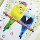 虎皮鹦鹉的田园婚礼:小鹦鹉穿着婚纱和礼服,脸红红的依偎在一起, 好像在说什么小秘密,有点害羞哟!