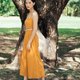 - MUSTARD YELLOW COTTON LINEN CAMI CROP TOP WITH BAND STRAP AND BACK SMOCKING