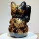 日本清水烧招财猫 色绘 黑地金樱 特大