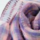 手织标准亚麻线一半粗细的极细拉米亚麻线,特征是纤维毛羽少且富有光泽。经线总数为 516 根,织造密度细致,触感极其柔韧。亚麻披肩的吸水性、吸湿性与速干性均优于棉,不会黏腻于肌肤,带来干爽清新的触感,适合从春季至秋季的三个季节使用。