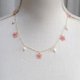A necklace with rice-shaped freshwater pearls and tatting lace flowers has been made.