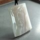 淡晴渐变淡紫,这种紫色市场很小见,有种像红酒挂杯时淡淡的色彩,玉质非常细致。浅浮雕工艺,简而精,线条流畅,巧妙运用玉件的渐变色过度刻画出关二哥的侧面,具有一定艺术造诣,非一般货可比。三七脸相百看不厌,双抛光质感更显高级。背面一刀切。牛鼻孔无损美感。🔸图中硬币为港币一元(25mm),相约于台币10元/新加坡1元大小。