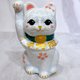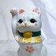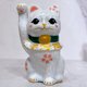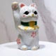 白色花结晶的濑户型招财猫是日本清水烧花结晶陶瓷的艺术珍品