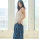 采用印度蜡染(dabu print)的泥染防染技术,在印花时使用泥状物质阻挡颜色渗透,再以靛蓝染色。