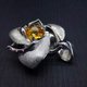 以三瓣百合延龄草为灵感所设计的造型,搭配有色宝石以及钻沙表面处理,显得稳重大方又不失优雅的坠子。延龄草 (Trillium) 分布于北美洲,希玛拉雅山,以及部分东亚地区,三片叶子以及三片花瓣相间组成的放射线对称造型非常好辨认。花语是纯净,美丽,复苏;为加拿大国安大略省的省花。