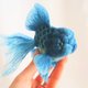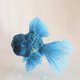 这是一只清爽的蓝文鱼。 腹部呈现出黄色鳞片的渐层感。 比真实的蓝文鱼更明亮鲜艳的蓝色,是一件充满活力的作品。 无论您是否喜爱金鱼,都推荐给您。 尺寸:宽 16cm × 高 14cm