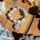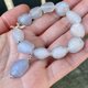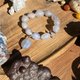 全串也是天然没打磨的小原石,像蛋白石一般的透蓝色,有些内里是水晶结构,有些带糖心,配上飞鸟设计,甜美可爱的一个。