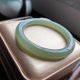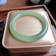 **〔 简介 〕:**极品冰底湖水 天然和田玉青海料玉镯 超级适合这个夏天 完美无结构 圈口55.4 尺寸8*8.5 编号00755 仅此一件 进店点关注送优惠券!