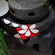 油桐花为五瓣白花,花瓣末端撮尖凸起, 雄花的落花是整朵的,雌花则是五片花瓣分别飘落, 落在餐桌上化成了片片雪桐盘
