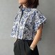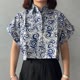 印尼蜡染可爱少女风短版衬衫 PUPUT - 蓝贝壳 - PUP019