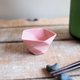 - This is a pentagonal rice cup with an origami motif. It is made using a technique called "casting," in which muddy clay is poured into a mold and formed. The clay is mixed with glaze and molded, and the surface is polished after firing. The result is a smooth texture unique to porcelain clay.