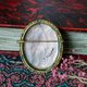 这款胸针由珐琅搪瓷彩绘在小巧的黄铜材质上,艺术家以相当精致的技法再现《圣奥比法拉》这幅画作。艺术家留下签名在胸针的背面 -- E. Soupal,预估是1920年代的作品。