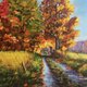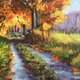 油画布上的秋季树木风景,用担架拉伸。这幅画是我的原创作品。