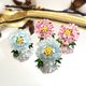 - 花之王牡丹 树脂耳环 红白双色染 / 粉蓝渐层