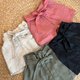 High waist, 2 side pocket detail, front bow tie, front zip fastening, smooth back, looks good wearing, not elastic, color does not fade, washes, does not shrink, easy to iron fabric, comfortable to wear. Matte with every outfit