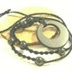 Materials: shungite polished double circle (diameter around 47 mm), shungite polished beads (size 11-12 mm), black waxed cotton cord.