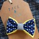 这可爱小煲呔以棉质布料制作,上层粉深蓝色棉布料印上了波点花纹图案;底层则以黄色的布料衬托,中间部份则用上了灰色。