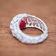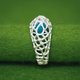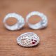 The gemstone can be changed in the “Keeper” series. Choose between red, blue or green to coordinate your outfit for the day! The loose stone jingles and jangles inside the modern, bulbous, mesh-like design.