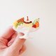 在盛装布丁的玻璃杯部分,使用了带有切面的六角珠饰和夏洛特珠饰,光线照射在切面时,会闪耀着细腻而璀璨的光芒,格外美丽。