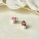 在雅致的陶片上,点缀着若隐若现的粉色与黄色花纹,我们搭配了淡水珍珠。