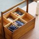 指物最初是京都朝廷和宫廷使用的物品,以漆涂和金箔等华丽地装饰。而江戸指物则以其非常简朴和坚固的制作而吸引人。因此它能够轻松融入现代的时尚装潢设计中,而不会感到不协调。然而,正因为其简约才容不得一丝马虎,设计中充分展现了工匠的技艺和材料的品质。从任何角度看,它都展现出凛然姿态,永远不会失去它的光彩。
