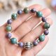 珠子是蓝绿色~浅绿色不等,带有红咖色、黑点纹路,也会有冰裂纹。