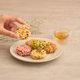 与在地品牌合作,以暮酿经典手作酱油揉入米香的幸福甜咸滋味而成的酱香米饼加上大受欢迎的玫瑰及抺茶口味 呈现味觉新感受
