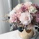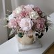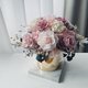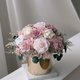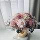这款桌花使用日本大地农场有机永生不凋玫瑰/不凋绣球,缤纷的裸粉色渐层玫瑰搭配渐层自然粉色系绣球。精致优雅配上铜金色金属花器凸显高贵内敛低调气质喔,好好照顾可以观赏3年以上喔~