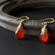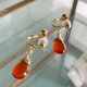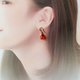 这款饰品选用了七月诞生石中,那鲜艳而富有光泽的红玉髓(Carnelian),精心制成耳饰。