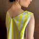 ● 身片:100% 纯棉斜纹布料,带有连续的黄色圆点。织纹扎实挺括,同时触感柔滑。不透肤。