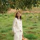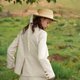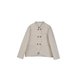 白色中带有一些黑色的杂色点点,像燕麦片一样的自然醇厚,弧型下摆配上双排扣的设计,再加上立领,整体非常古典优雅,与马甲衬衫一套穿搭,很有复古味道~
